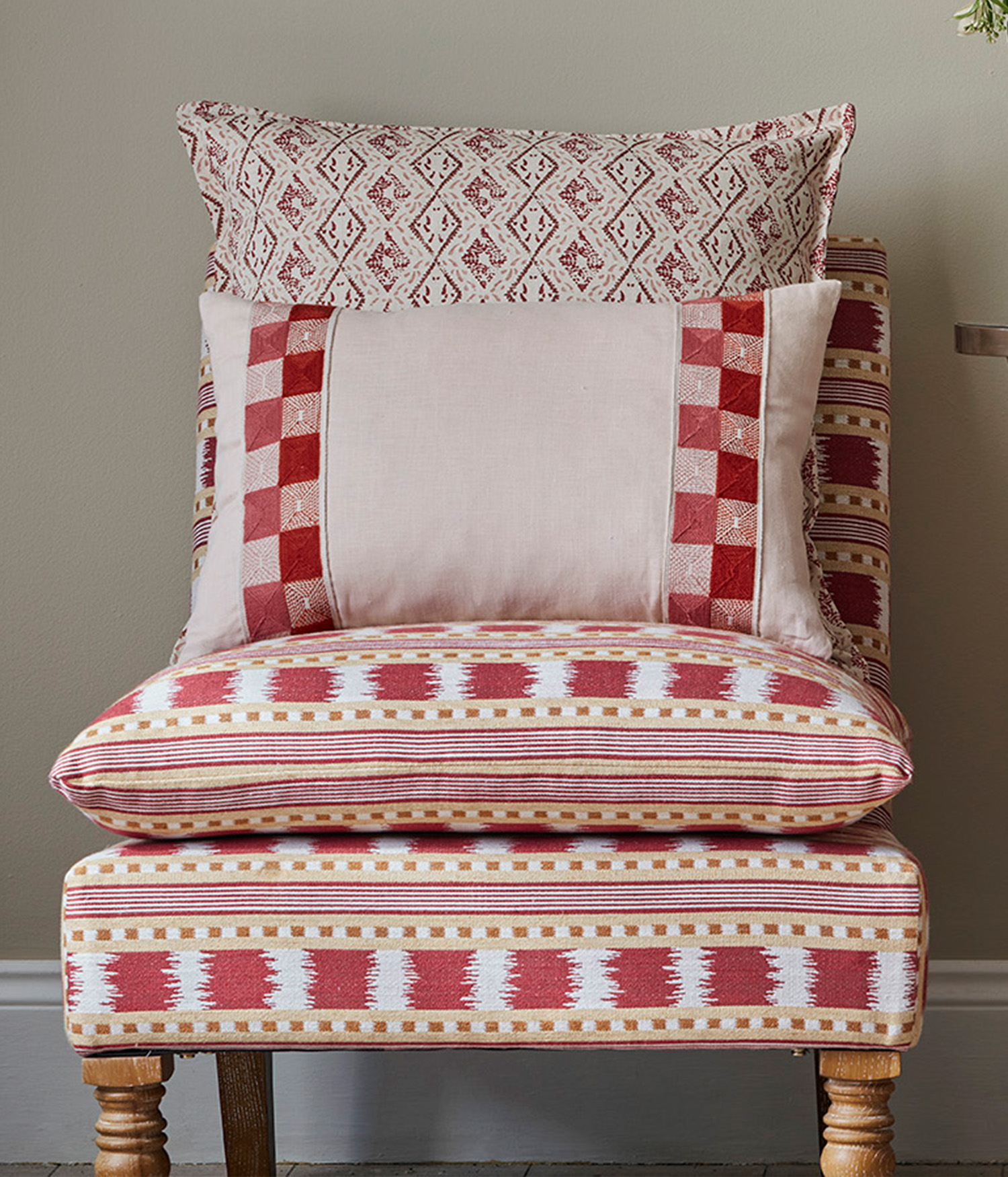 Add a touch of tailored elegance to your decor. This Dacca cushion boasts a soft geometric hand block look featuring a smart Oxford edge. Designed, digitally printed and handmade in England. Available in 2 colourways with a discreet concealed zip.