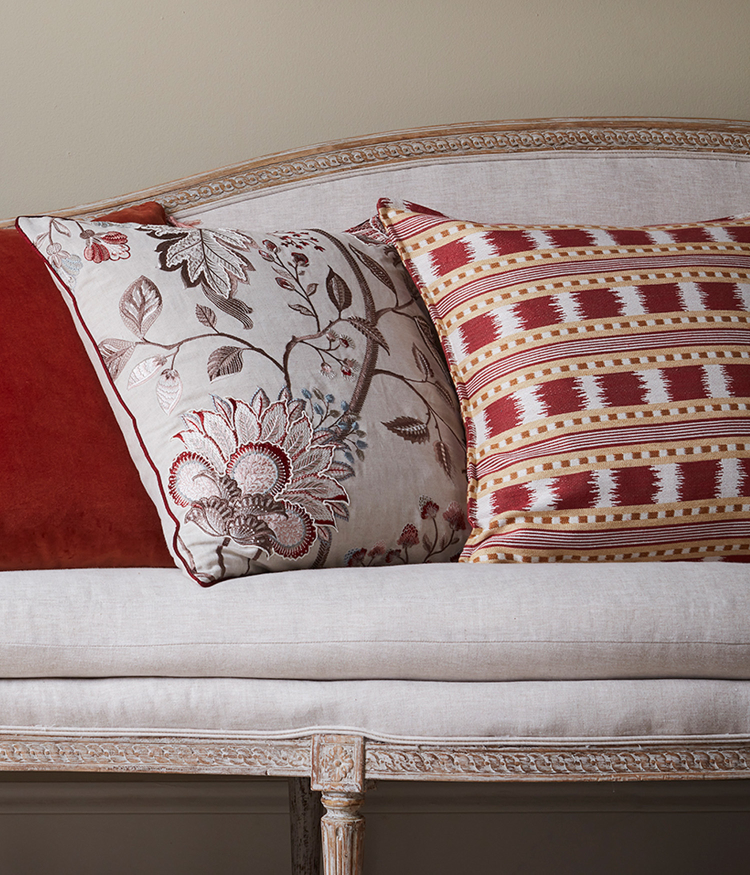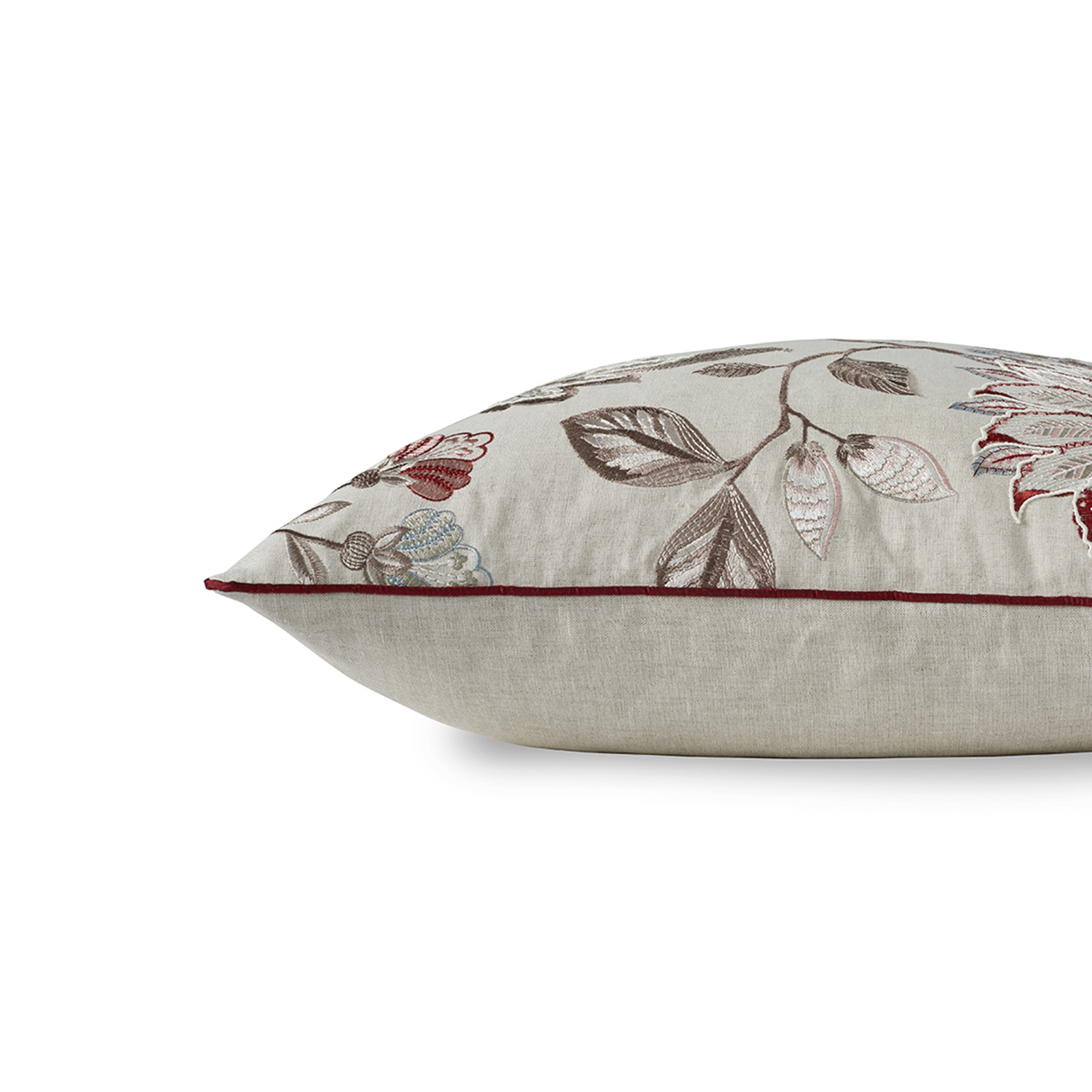 The exquisite Shalimar cushion showcases a breath-taking floral design, brought to life with a palette of ten distinct colours and delicate corded details for added pattern definition. Finished with a discreet concealed zip and a luxurious silk piped edge to complete the opulent look, the Shalimar cushions is a statement embroidery and is the perfect centrepiece for any bed or sofa. Available in 3 colourways.